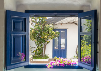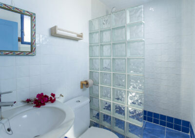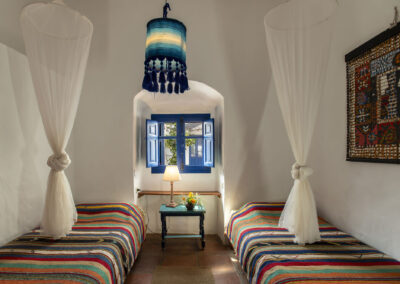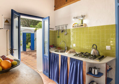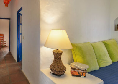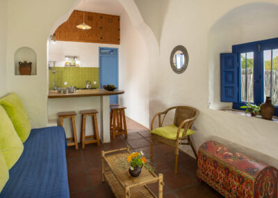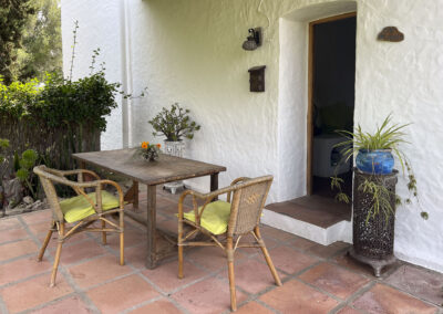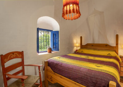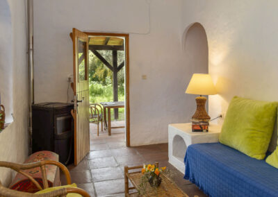The bedrooms in this old Andalucian farmhouse are located in a wing off the main living room: the first a twin room with plenty of storage space that looks onto the courtyard, and the second a compact double room with a window looking onto the garden. Because it’s all arranged on the ground floor with direct access to the garden and terrace it is a good choice for families with young children.