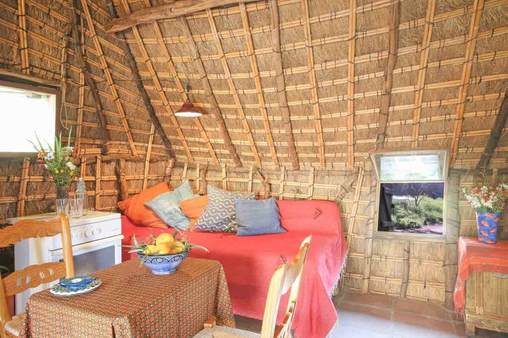 Eines unserer schönen Öko-Häuser. La Chozita ist das kleinste unserer drei Chozas und hat ein einzigartiges Flair. Es besteht aus einem großen, handgefertigten Doppelbett aus Holz, einem Sofa/Bett, einem Tisch, Stühlen und einer Küchenzeile.