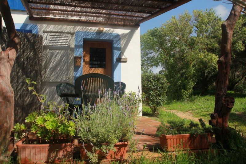 Haus mit 2 Schlafzimmern. Terrasse mit Strohdach und Hängemattenplatz unter den Bäumen, mit Blick auf die schönen, mit Kiefern bewachsenen Hügel des Naturparks.