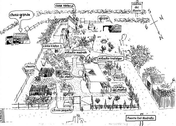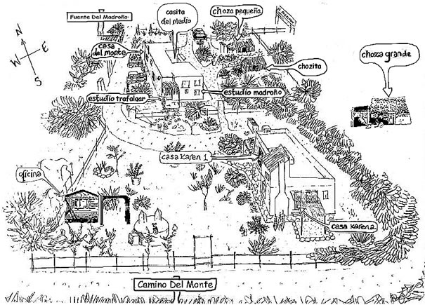 For the Casa del Monte, Casita del Medio, Estudio del Madroño, Estudio Trafalgar, Choza Pequeña and the Chozita, take the Calle Fuente del Madroño, which is the next turning on your right after the Camino del Monte.